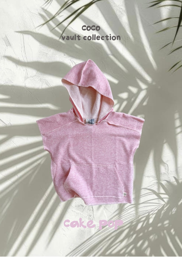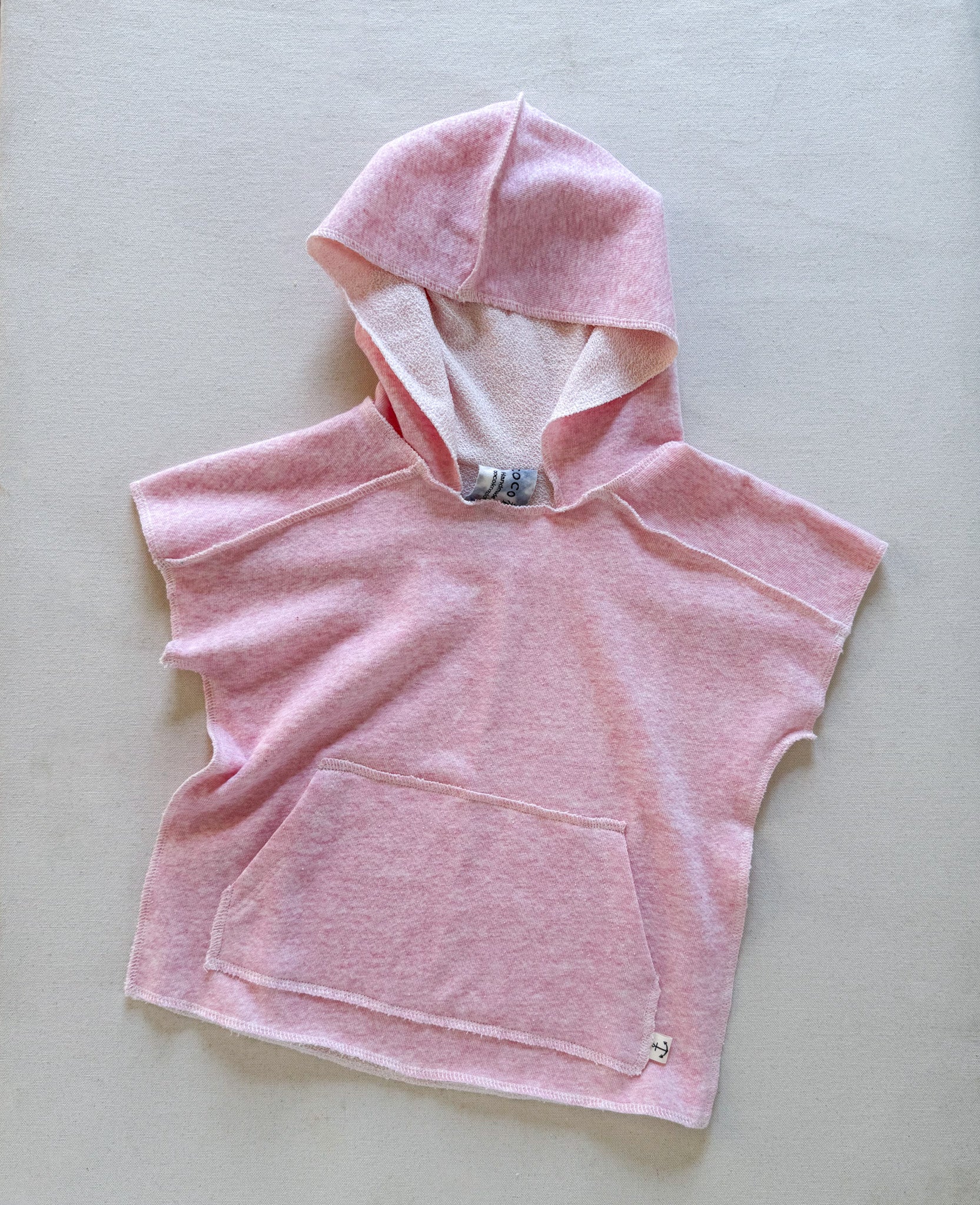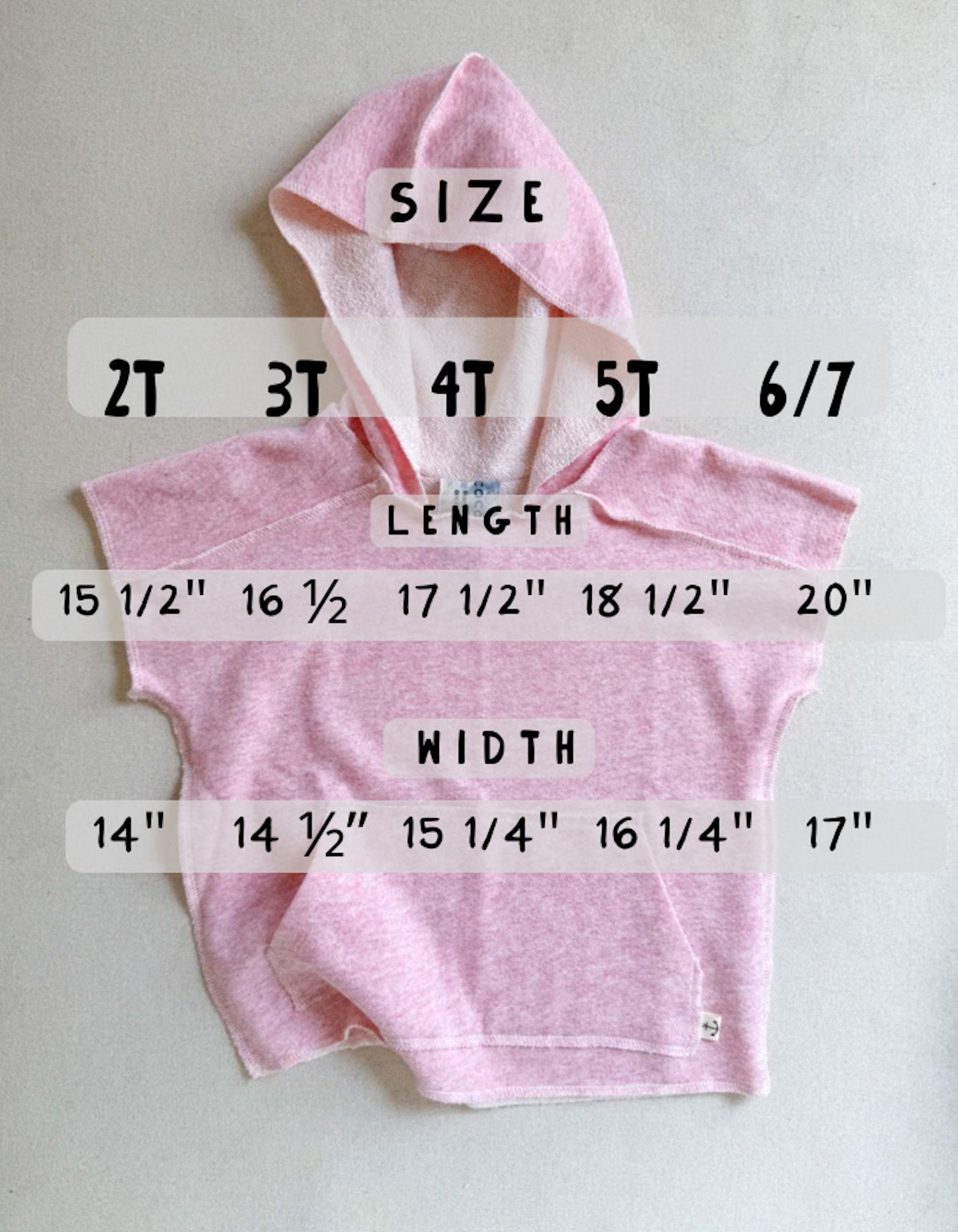 Our beach poncho in cake pop is a limited release! This cozy poncho is such a versatile piece, it can be worn on its own as a short sleeve top, a swim cover, or as a layering hoodie on cool summer nights.