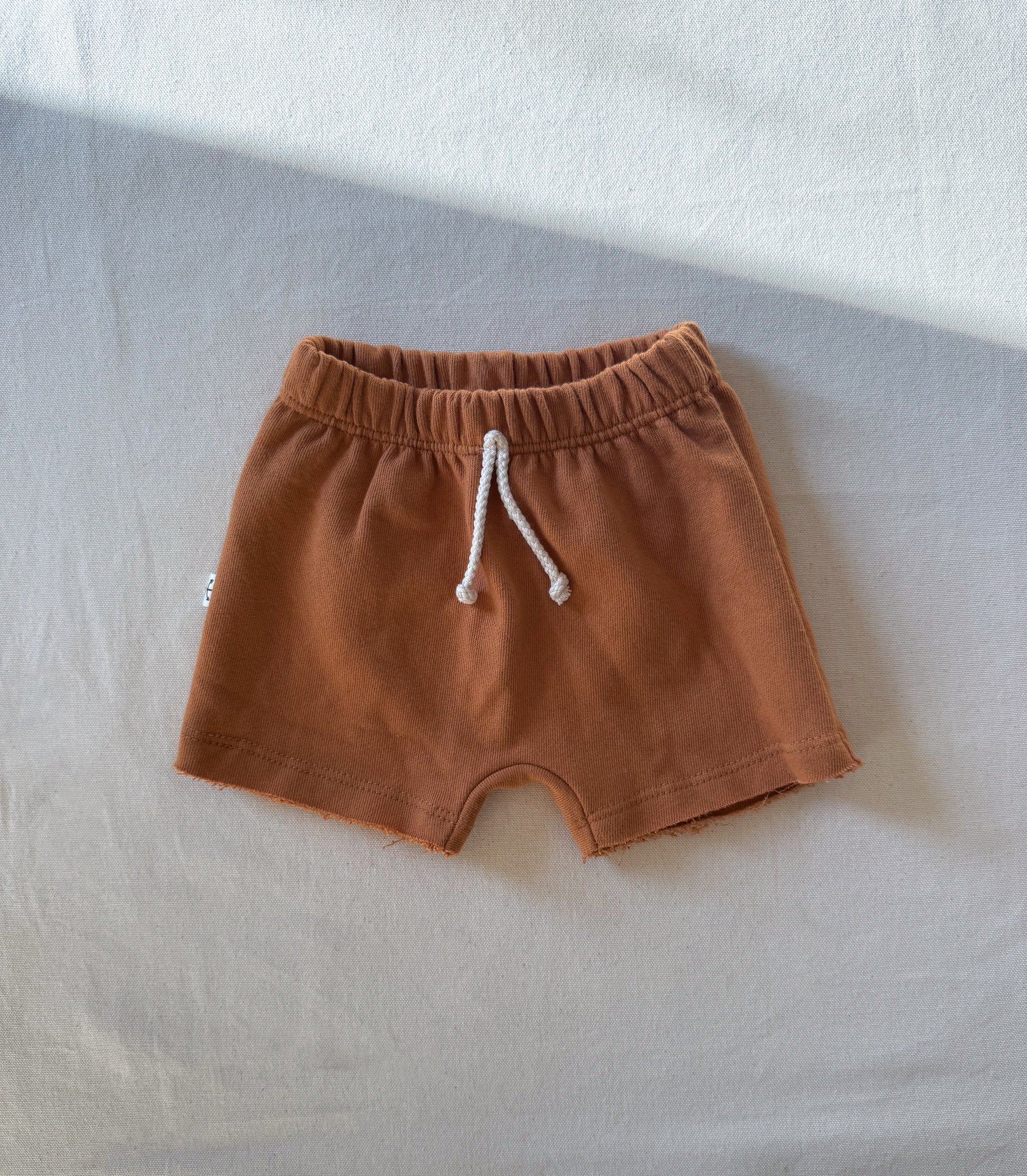 Boy shorts are a semi relaxed fit short hitting just above the knee. Featuring black jersey pockets, raw edge hem and faux drawstring. True to size