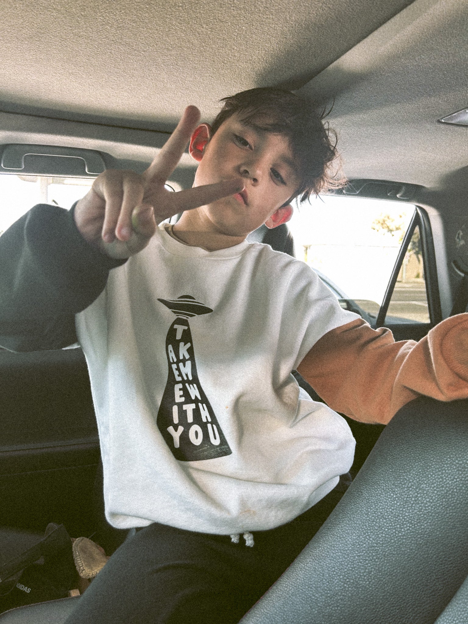 Meet our new, perfectly oversized sweatshirt! Designed for a relaxed fit that gives your babes the freedom to move and play comfortably. Featuring drop shoulder sleeves in black pearl & caramel with soft & stretchy rib knit cuffs, neck & waistband in.
